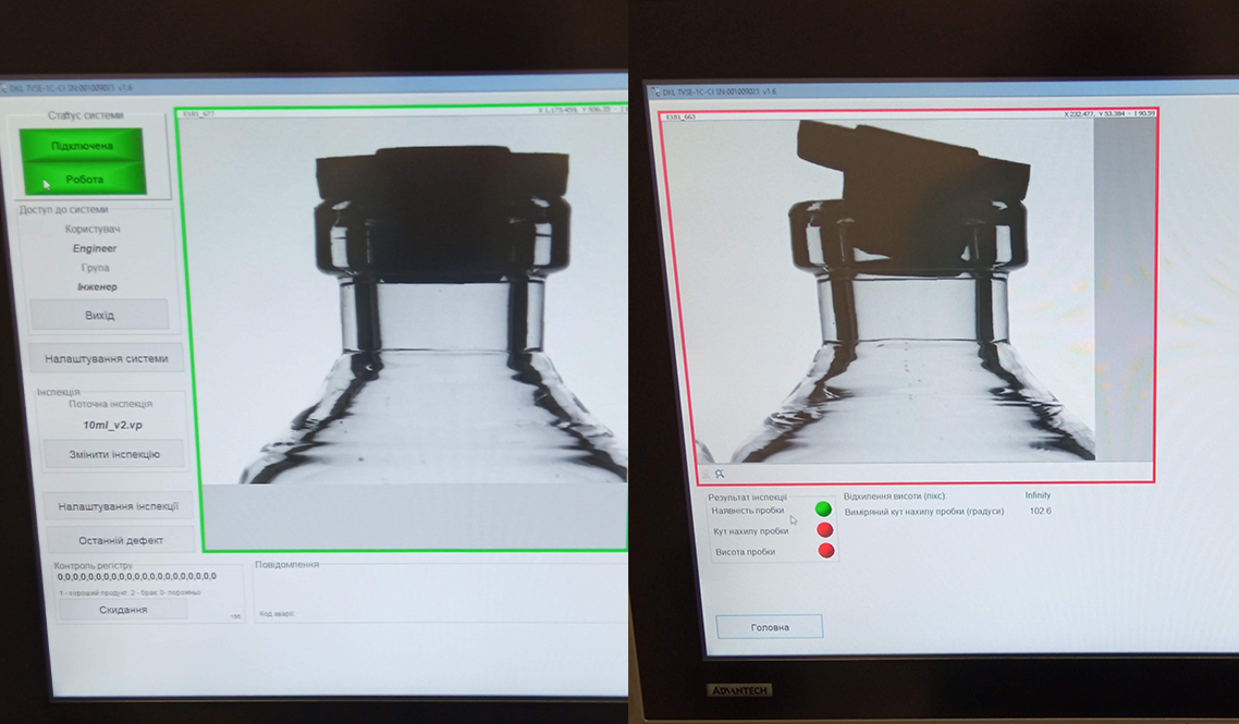 Система контролю укупорки автоматично виконує аналіз: